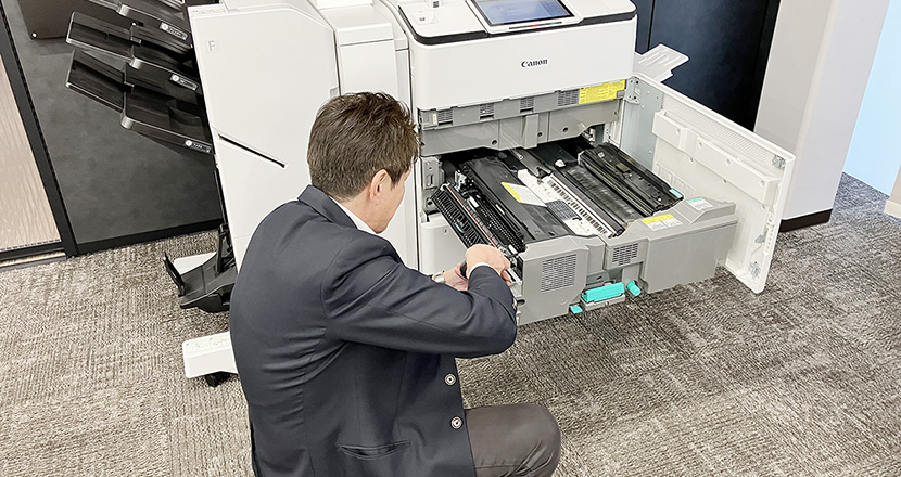 ご購入いただいた複写機が、常に良質なコピーが得られるよう、キヤノンが認定したトヨジムカスタマー隊が訪問し所定の点検・整備や感光体・部品交換などを致します。またこの他にお客様のご要望があれば速やかにお伺いし必要個所の修理を行ないます。その為の必要な費用はMG料金に全て含まれます。